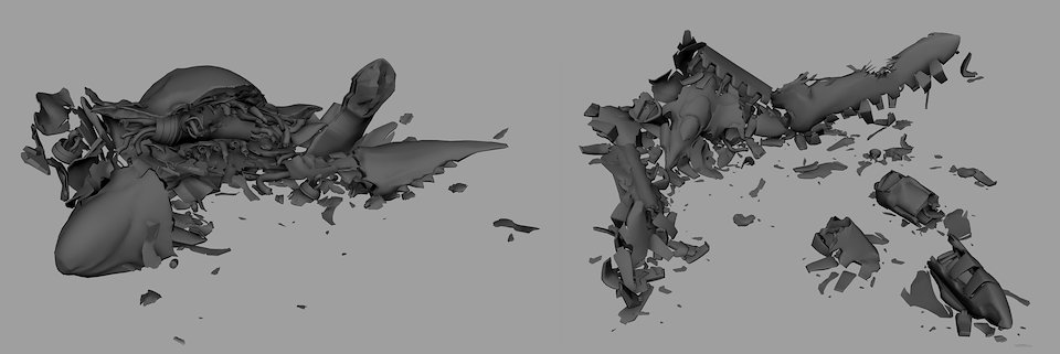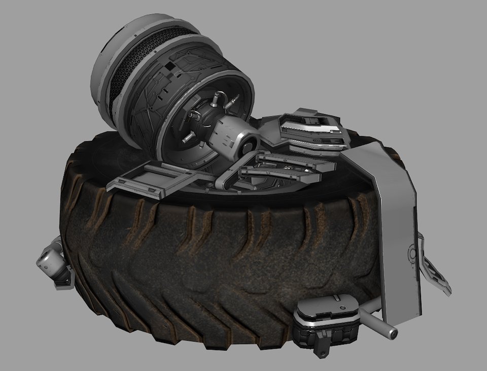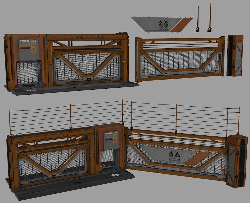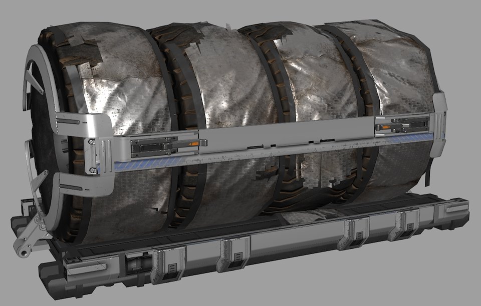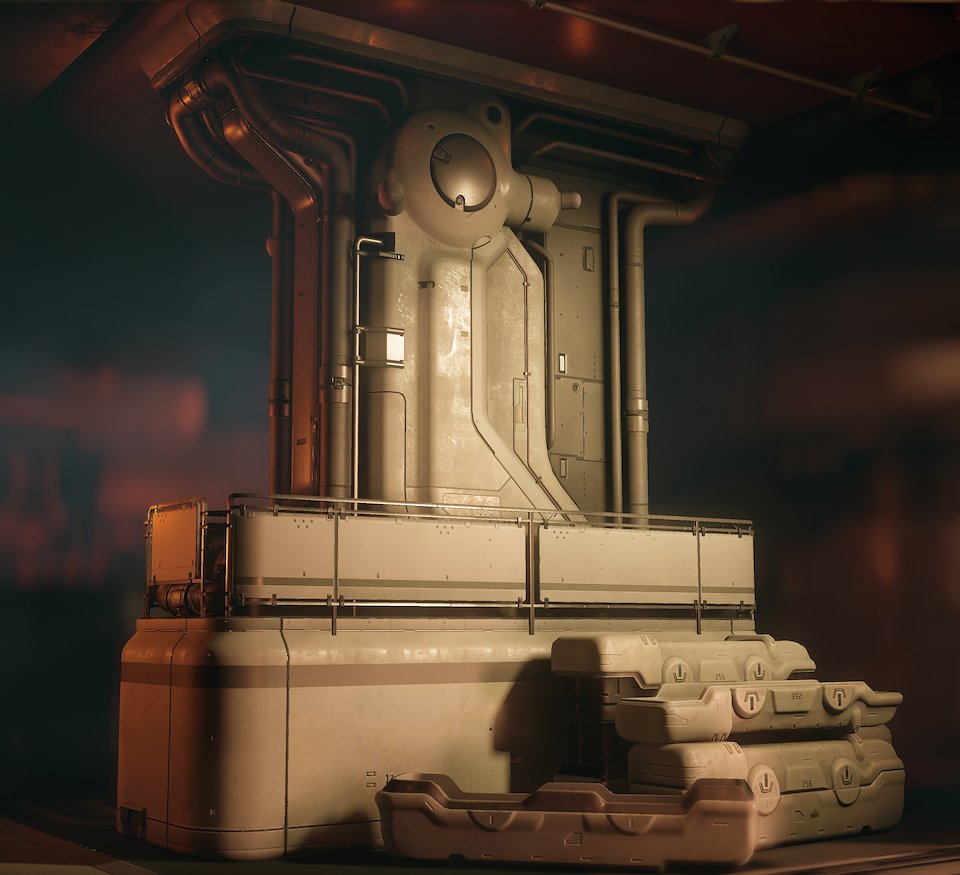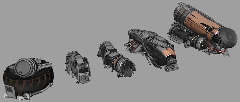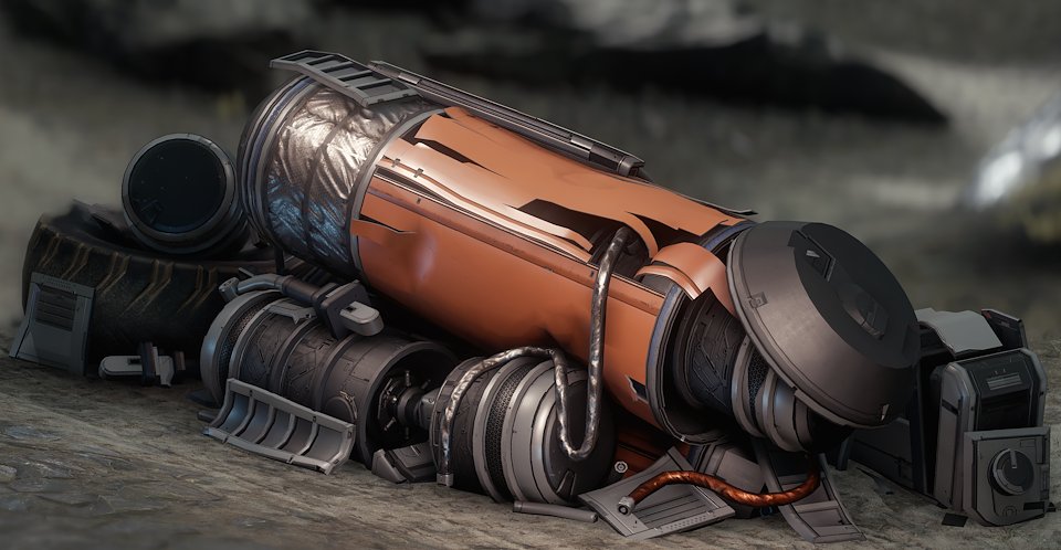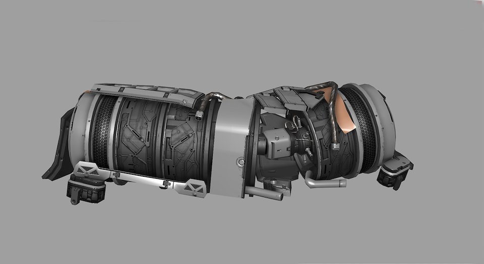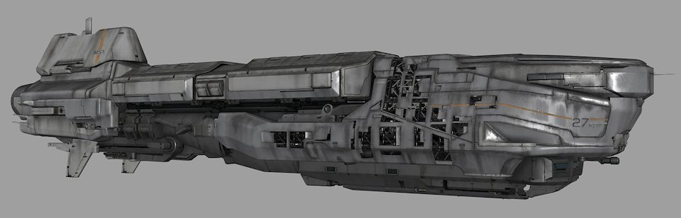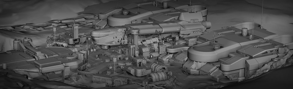 A few isolated assets that I modeled and kitbashed during the process–from the ship to most of the surrounding details.