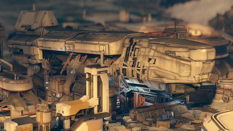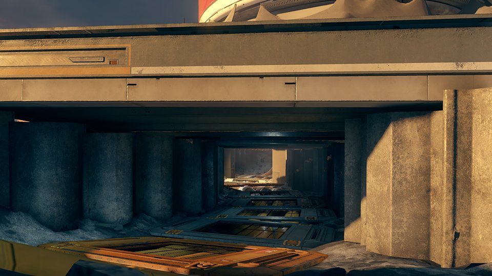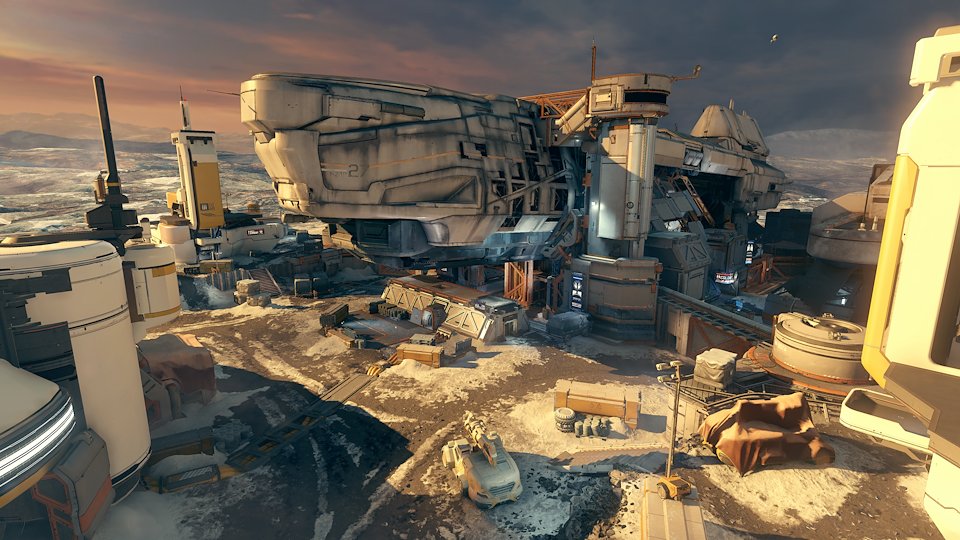 During Halo 5 sustain efforts, I worked on the Warzone map “Skirmish At Darkstar”. I was responsible for the Colony area in the center of the map. It features a large spaceship being decommissioned and used for scrap to supply the harvesting outpost. Through extensive kitbashing, layout and custom modeling, I authored the majority of this area. Although there was also a great deal of collaboration on the space with fellow artists–Shawnell Priester, Mark Nicolino, and map lead Donnie Taylor.